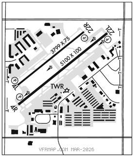 AIRPORT REMARKS: Attended Aug 16–May 14 Fri–Sun 1230–2300Z, Aug 16–May 14 Mon–Thur 1230–0100Z, May 15–Aug 15 Fri–Sun 1200–2230, May 15–Aug 15 Mon–Thur 1200–0100. Rwy 04L–22R clsd when ATCT clsd. 150 ft x 95 ft blast pads avbl. Fuel: A: SAF. Fixed wing and rotorcraft trng, birds and wilflife on and invof arpt. Rwy 22L right tfc when ATCT clsd or Rwy 04L–22R is clsd. Turb psbl blw 500 ft near test site 1.5 miles N. Ctn: Heli 1 mi N; do not mistake for rwy. Twy G clsd when ATCT clsd. TPA–2400 (1006) for light acft, 2900 (1506) for large and turbine–powered acft, 1900 (506) for rotorcraft. Rwy 04L calm wind rwy. 2786 ft MSL unlgtd mt 5 mi E. Rising trrn NE. Trng ops Rwy 04L–22R when psbl; trng ops NA 0500–1230Z. Trml apron lmtd to 45000 lb gwt single wheel or 75000 lb gwt dual wheel. SAID in use. Operate transponders with altitude reporting mode and ADS–B (if equipped) enabled on all airport surfaces. NOTE: See Special Notices–Arrival Alert.