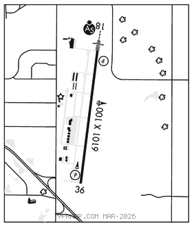 RWY18–36:H6101X100 (CONC–GRVD) S–40, D–62 PCN 15 R/B/X/T MIRL 0.3% up S