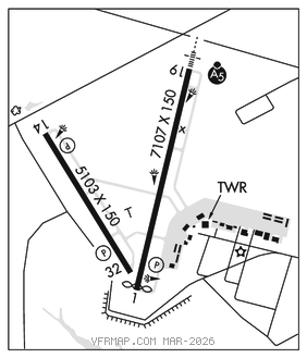 RWY 01–19: H7107X150 (ASPH–GRVD) S–50, D–82, 2S–121, 2T–276, 2D–166, 2D/2D2–166, C5–466 PCR 547 F/B/W/T HIRL