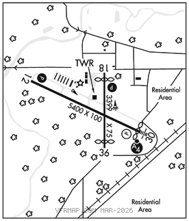 RWY 18–36: H3399X75 (ASPH–GRVD) S–38.5, D–56.5 PCN 14 F/C/Y/T MIRL