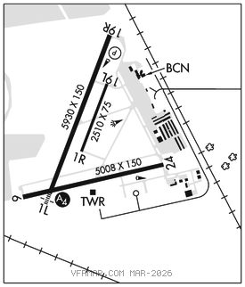 RWY 01L–19R: H5930X150 (ASPH–GRVD) S–102, D–134, 2D–120 PCN 41 F/D/X/T MIRL 0.3% up N