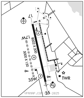 RWY 17–35: H8002X200 (CONC–GRVD) D–105, 2S–133, 2D–163, 2D/2D2–400 PCN 39 R/B/W/T HIRL