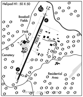 HELIPORT REMARKS: Helipad H1 located on FBO apron. Heli, H–1 sfc cond fair, pavement cracking.