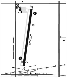 RWY 18–36: H4254X75 (ASPH) S–12 PCN 5 F/C/Y/U MIRL 0.5% up S