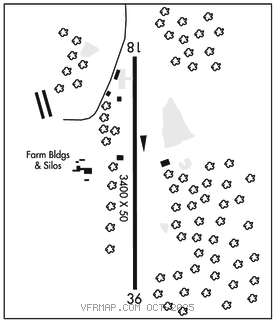 AIRPORT REMARKS: Unattended. Arpt CLOSED SS–SR indef. Deer on and invof arpt. Farm equip operating near rwy. Rwy 18–36 severe cracking. 1–2 inches in places and along cntrln. Rwy 18–36 longitudinal and transverse cracking, some raveling in certain areas.