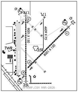RWY 35L: MALSF. TDZL. PAPI(P4L)–GA 3.0° TCH 32′. RVR–TR Rgt tfc.