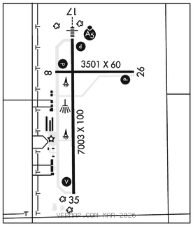 RWY 17–35: H7003X100 (CONC) S–50, D–75, 2D–135 PCN 21 R/C/X/U HIRL