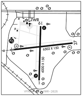 RWY 09–27: H6502X150 (ASPH–GRVD) S–97, D–156, 2S–98, 2D–261 PCR 1130 F/A/X/T HIRL 0.4% up W