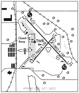 RWY 03–21: H7002X150 (ASPH–GRVD) S–75, D–140, 2D–220, 2D/2D2–620 PCN 46 R/C/X/T MIRL 0.5% up SW