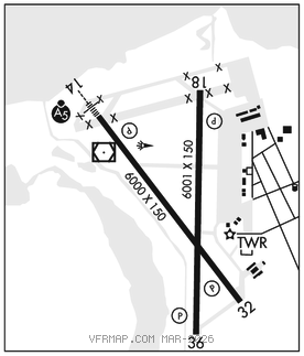 RWY 36: TORA–6001 TODA–6001 ASDA–6001 LDA–6001