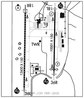 RWY 18L–36R: H10001X150 (ASPH–GRVD) S–120, D–247, 2S–175, 2D–435, 2D/2D2–972 PCR 620 F/B/X/T HIRL