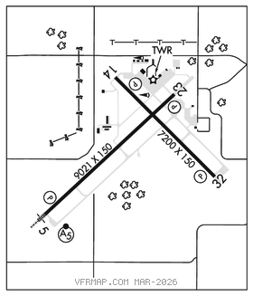 RWY 14–32: H7200X150 (ASPH–CONC–GRVD) S–75, D–200, 2S–175, 2D–300 PCR 650 F/D/X/T HIRL 0.3% up SE