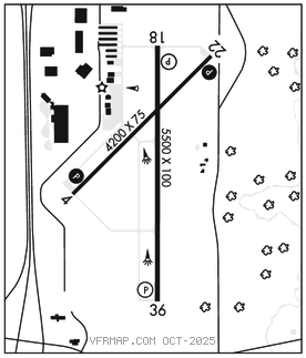 RWY 18–36: H5500X100 (CONC) S–30, D–40 PCN 12 R/B/W/U MIRL 0.3% up N