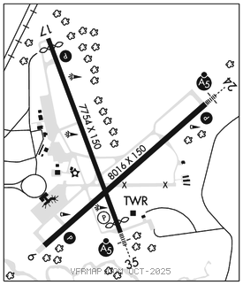 RWY 17–35: H7754X150 (ASPH–GRVD) S–60, D–185, 2S–175, 2D–300 PCN 61 F/B/W/T HIRL