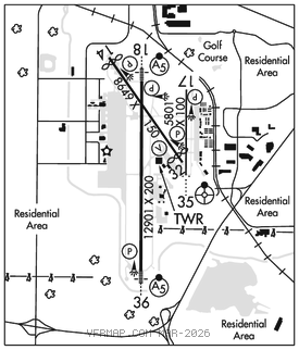 RWY 18–36: H12901X200 (ASPH–CONC–GRVD) S–100, D–200, 2S–175, 2D–400 PCR 672 R/B/W/U HIRL