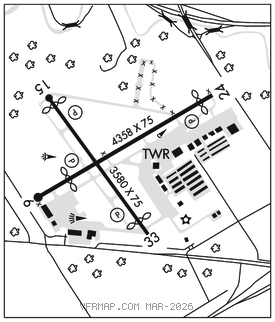 AIRPORT REMARKS: Attended 1200–0300Z‡. Stage 3 compliance rqrd for turbojet; PPR for acft over 30,000 lbs GWT– Amgr. Birds on & invof arpt durg dalgt hr. Compass rose lctd at admin bldg not for compass calibration use. Trng ops NA when ATCT clsd. 24 hr PPR for mil rotary wing. Obstns & trees in all apch sfcs. ADCUS flt notification svc avbl. NOTE: See Special Notices–Terminal Area Graphic Notice.