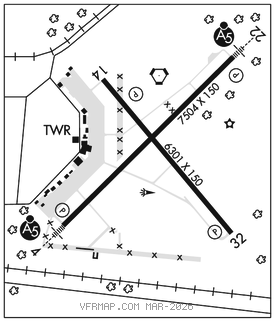 RWY 32: TORA–6301 TODA–6301 ASDA–6301 LDA–6301