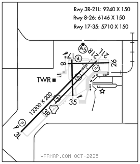 RWY 03R–21L: H9240X150 (ASPH–CONC) S–162, D–200, 2D–400 PCN 48 R/C/W/T HIRL 0.4% down SW