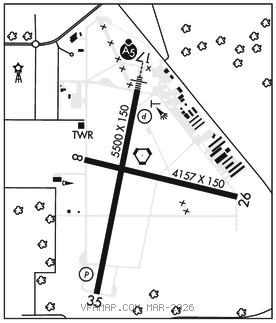 RWY 17–35: H5500X150 (ASPH–GRVD) S–75, D–94, 2S–87, 2D–142 HIRL