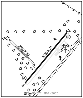 AIRPORTREMARKS: Attended 1300–2300Z‡. Rwy 13–31 CLOSED indefly. Rwy 13–31 rwy not mntnd, rwy sfc rough, deep ruts, not suitable for acft. Trees obst pri sfc Rwy 13–31. 3 ft open drainage culvert at thr, 31 ft both sides.