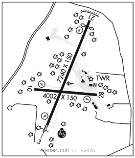 RWY 10–28: H4002X150 (ASPH–GRVD) S–50, D–75, 2D–135 PCN 30 R/C/X/T HIRL