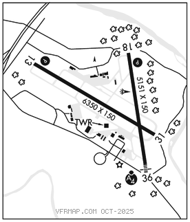 RWY 18–36: H5151X150 (ASPH–GRVD) S–75, D–200, 2S–175, 2D–400 PCR 610 F/C/X/T HIRL 1.0% up S