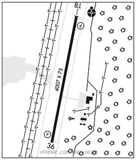 AIRPORTREMARKS:Attended 1400–2300Z‡. Ultralight activity on and invof arpt. 100LL avbl H24 with credit card. Rwy 18 and 36 markings faded.
