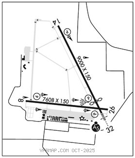 RWY 14–32: H9000X150 (ASPH–GRVD) PCN 64 R/B/X/T HIRL