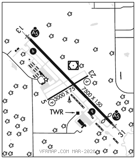 AIRPORT REMARKS: Attended 1100–0530Z‡. Deer, migratory waterfowl and other wildlife on and invof arpt. Crop dusting operations on invof arpt during summer months. Line of sight visibility is restricted from the Rwy 13 and 23 approach and Rwy 13 and 05 approach. Helipad not visible from ATCT and approach surfaces. Class I, ARFF Index B. 24 hrs PPR for unscheduled air carrier ops with more than 30 passenger seats call arpt manager 320–255–7292. Flight training on and invof arpt. Rwy 31 calm wind rwy. Rwy 13–31 200′ blast pad each end.