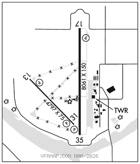 RWY 17–35: H8061X150 (CONC–GRVD) S–75, D–130, 2S–175, 2D–220, 2D/2D2–220 PCR 50 R/C/W/T HIRL