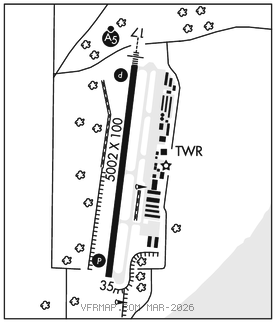 RWY 17–35: H5002X100 (ASPH–GRVD) S–50, D–80, 2S–102, 2D–80, 2D/2D2–150 MIRL