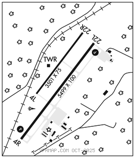 RWY 04R–22L: H5499X100 (ASPH–GRVD) D–130, 2S–175 HIRL 0.6% up SW