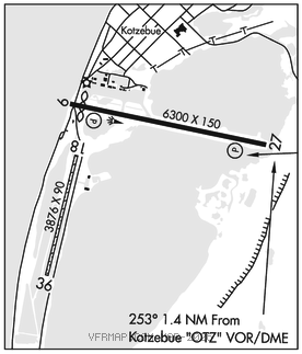 KOTZEBUE (H) (H) VORW/DME 115.7 OTZ Chan 104 N66°53.14′ W162°32.40′ 253° 1.4 NM to fld. 121/15E.