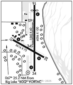 BIG LAKE (H) (H) VORTACW 112.5 BGQ Chan 72 N61°34.17′ W149°58.03′ 067° 25.2 NM to fld. 179/19E.
