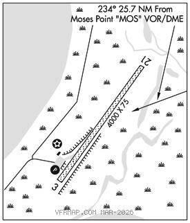 MOSES POINT (L) (L) VORW/DME 116.3 MOS Chan 110 N64°41.79′ W162°04.28′ 234° 25.7 NM to fld. 15/16E.