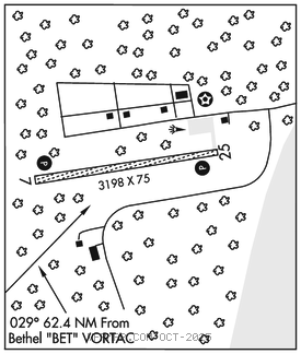 BETHEL (H) (H) VORTACW 114.1 BET Chan 88 N60°47.09′ W161°49.46′ 029° 62.4 NM to fld. 105/14E.