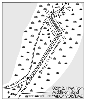 MIDDLETON ISLAND (MDO)(PAMD) 1 S UTC–9(–8DT) N59°27.00′ W146°18.43′