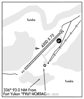 FORT YUKON (H) (H) VORTACW 114.4 FYU Chan 91 N66°34.46′ W145°16.60′ 336° 93.0 NM to fld. 449/20E.