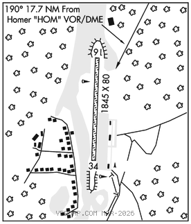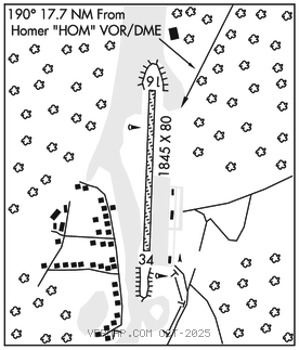 HOMER (H) (H) VORW/DME 114.6 HOM Chan 93 N59°42.57′ W151°27.40′ 190° 17.7 NM to fld. 1626/15E.