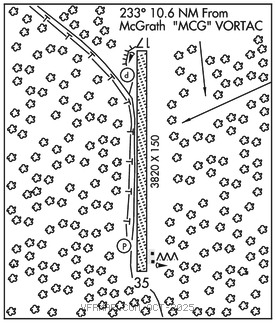 MC GRATH (H) (H) VORTACW 115.5 MCG Chan 102 N62°57.06′ W155°36.68′ 233° 10.6 NM to fld. 344/19E.