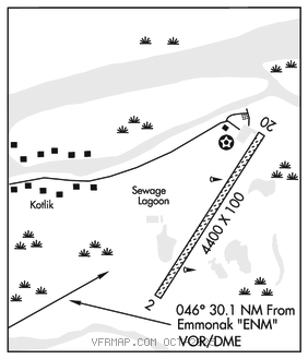 EMMONAK (H) (H) VORW/DME 117.8 ENM Chan 125 N62°47.08′ W164°29.25′ 046° 30.1 NM to fld. 17/14E.