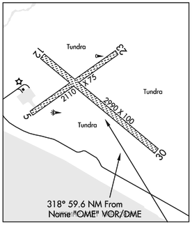 NOME (H) (H) VORW/DME 115.0 OME Chan 97 N64°29.11′ W165°15.19′ 318° 59.6 NM to fld. 95/11E.