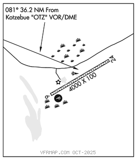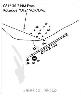 KOTZEBUE (H) (H) VORW/DME 115.7 OTZ Chan 104 N66°53.14′ W162°32.40′ 081° 36.2 NM to fld. 121/15E.