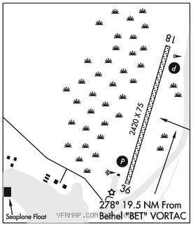 BETHEL (H) (H) VORTACW 114.1 BET Chan 88 N60°47.09′ W161°49.46′ 278° 19.5 NM to fld. 105/14E.