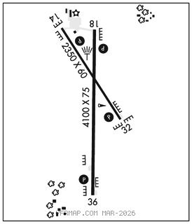 AIRPORTREMARKS:Attended Mon–Fri 1400–2200Z‡. Line of sight problems exist between Rwy 36 and Rwy 14–32. Rwy 36 is calm wind rwy.
