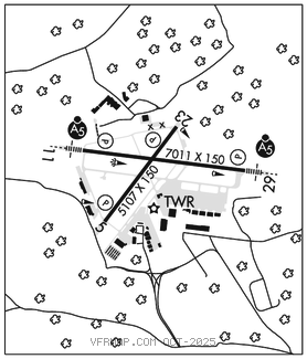 RWY 11–29: H7011X150 (ASPH–GRVD) S–120, D–250, 2S–127, 2D–389, 2D/2D2–916 PCR 950 F/D/W/T HIRL