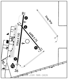 RWY 36: TORA–7094 TODA–7094 ASDA–7094 LDA–7094