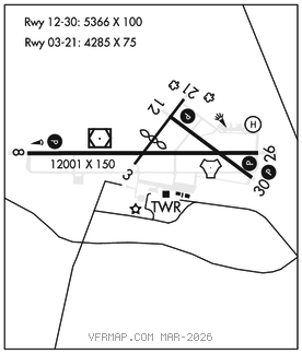 RWY 03–21: H4286X75 (ASPH–CONC) PCN 8 F/A/W/T MIRL 2.0% up SW