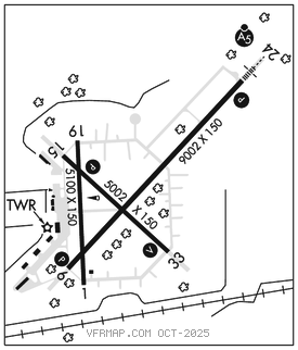 RWY 15–33: H5002X150 (ASPH) S–94, D–157, 2D–259 PCN 42 F/B/W/T MIRL 0.3% up NW