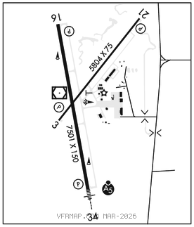 RWY 16–34: H7501X150 (CONC–GRVD) S–70, D–110, 2S–139, 2D–160 PCR 580 R/D/W/T HIRL 0.4% up SE